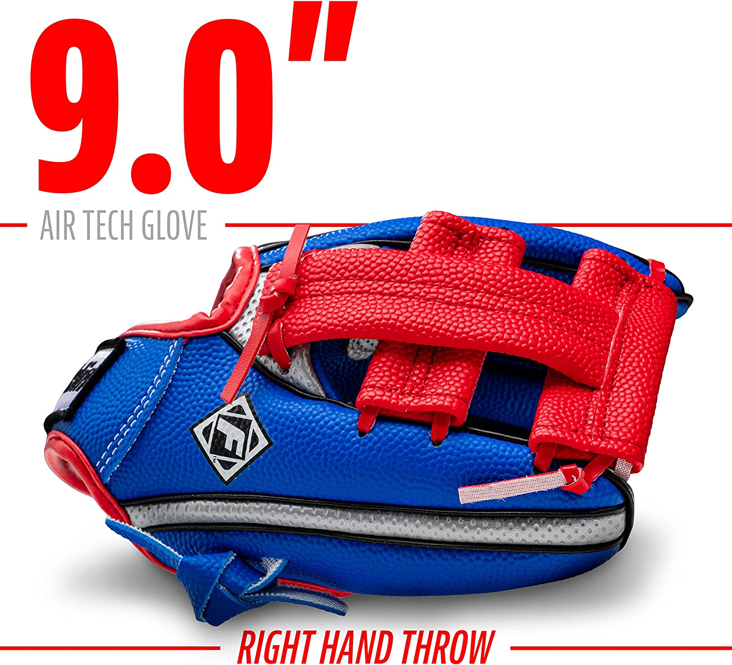 Franklin Sports Kids Baseball Glove + Ball Set - Air Tech Youth Teeball Glove - Boys + Girls Children's Glove + Ball - Right Hand Throw - Red/Blue - 9"