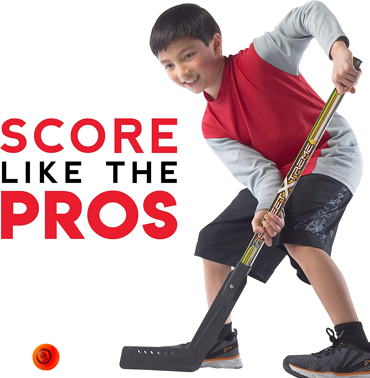 OFFICIAL STREET HOCKEY BALL: This set comes with an official size street hockey ball specially designed for low bounces to keep the ball in play